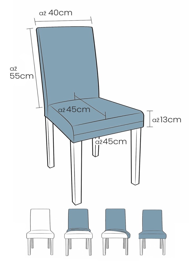 naprosté většině židlí o velikosti sedáku až 45x45cm a výšce opěradla do 55cm.