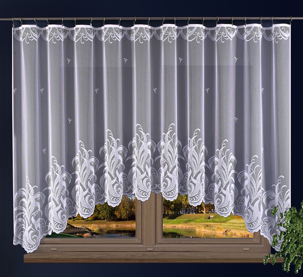 Žakarová záclona střední hrubosti v bílé barvě