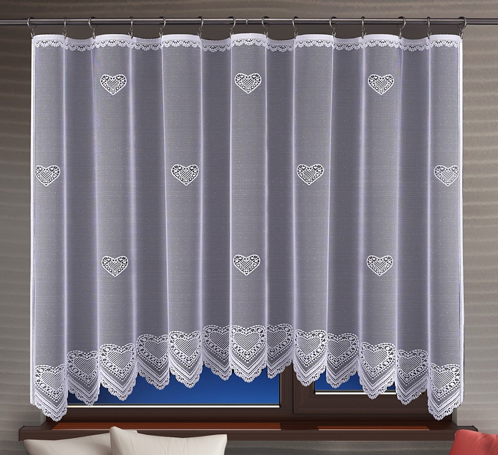 Hotová oblouková záclona žakarového typu - Srdíčka