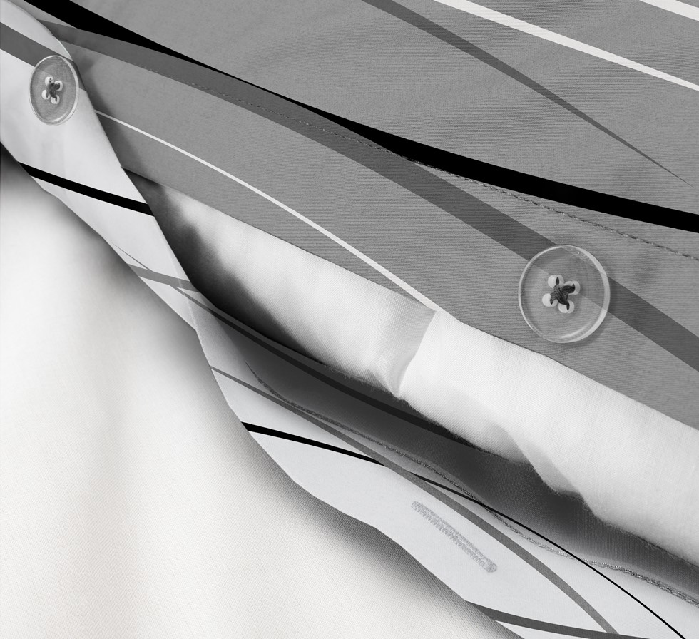 Povlečení perte zásadně převrácené naruby se zapnutými uzávěry