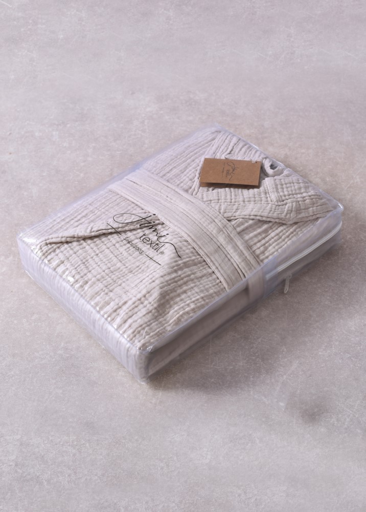 Objevte kouzlo županů z jemného mušelínu, což je lehká a vzdušná tkanina s jemnou strukturou. Tento přírodní materiál ze 100% bavlny je jemný k pokožce, prodyšný, savý, ale především neuvěřitelně lehký.