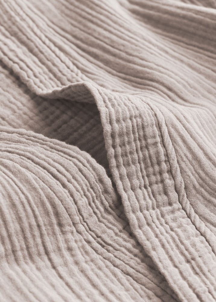 Objevte kouzlo županů z jemného mušelínu, což je lehká a vzdušná tkanina s jemnou strukturou. Tento přírodní materiál ze 100% bavlny je jemný k pokožce, prodyšný, savý, ale především neuvěřitelně lehký.