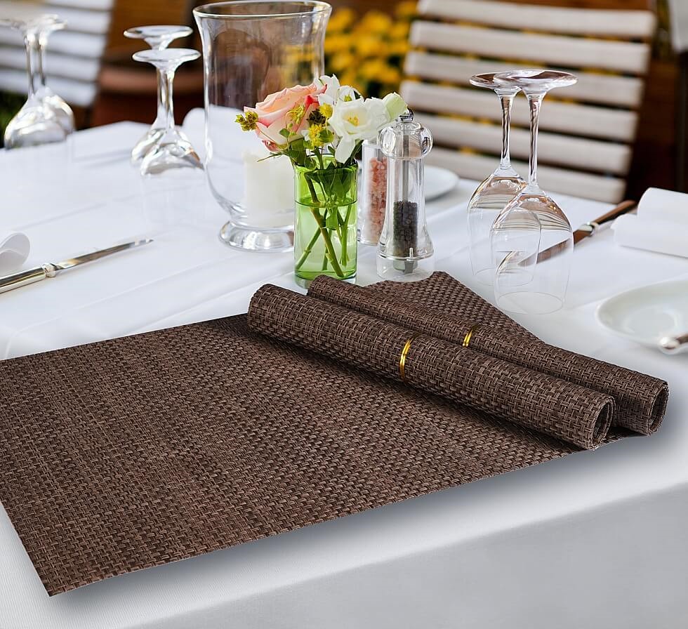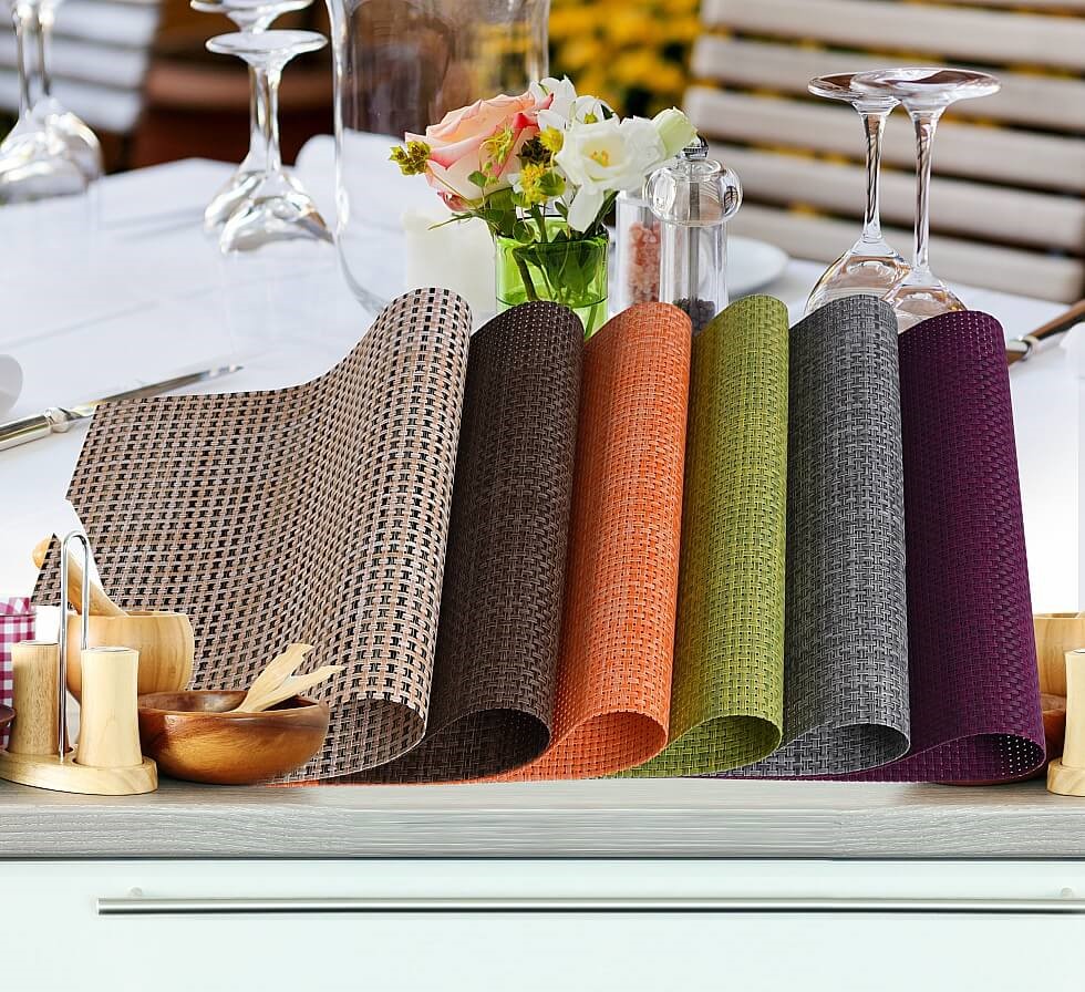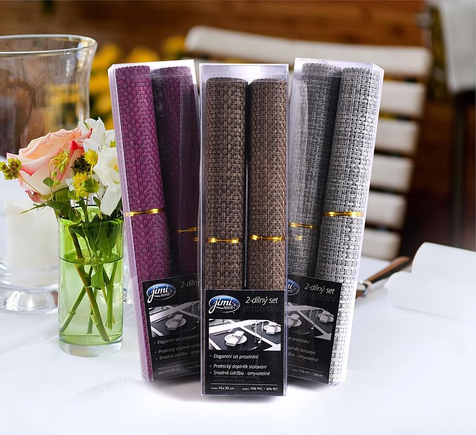 Elegantní sety prostírání z odolné umělé tkaniny jsou díky