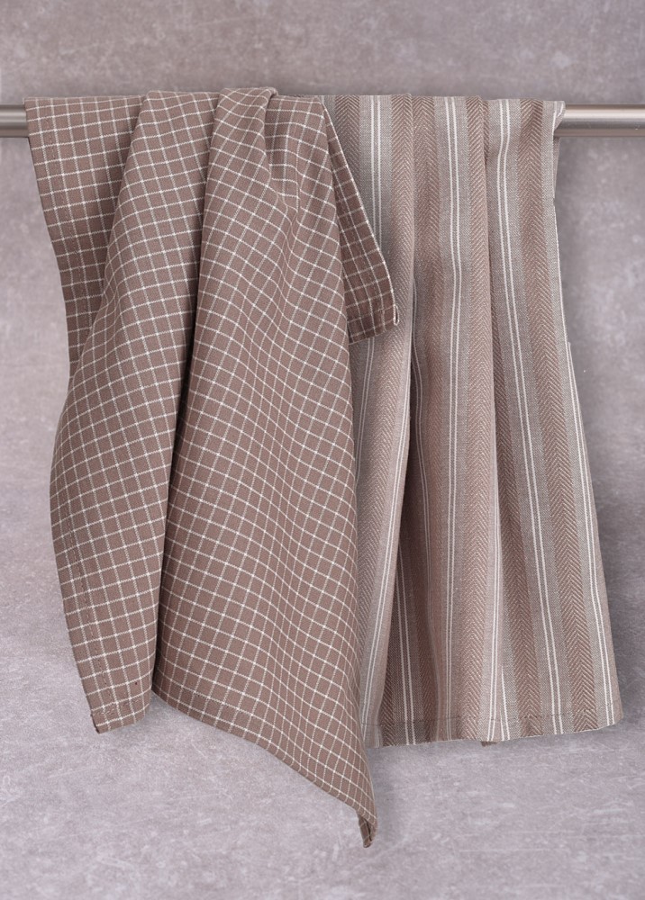 2-dílná sada vysoce kvalitních utěrkek v hnědém odstínu určená pro všestranné použití v kuchyni.